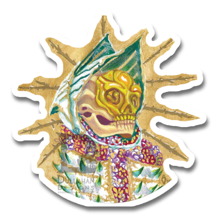 This sticker is based on an original piece and is roughly 3" inches all around, and is also available as a mousepad!